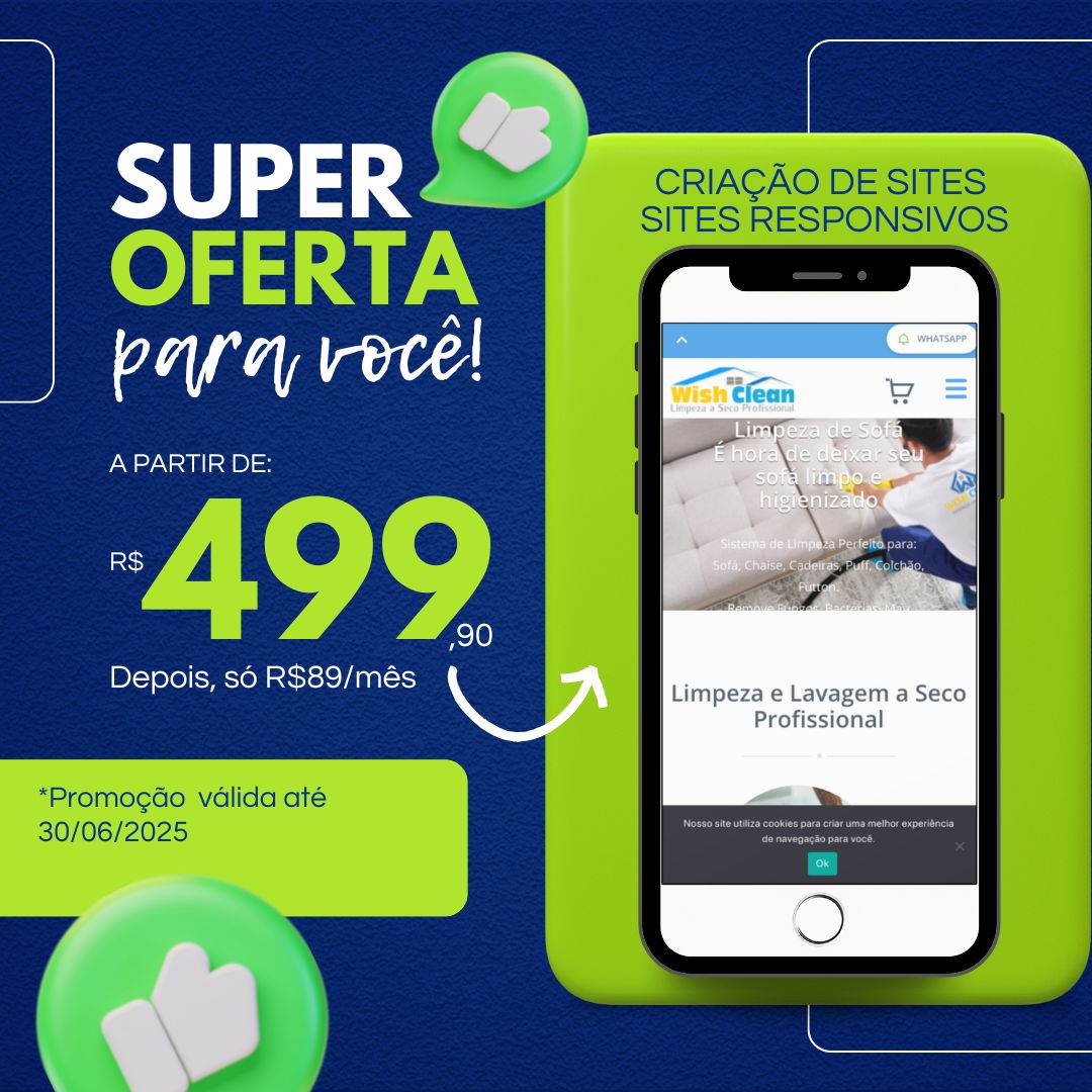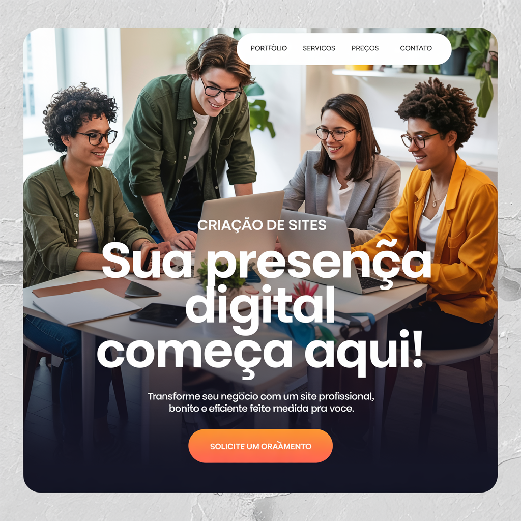 Entrega em 5 dias úteis, revisões ilimitadas até publicar, design responsivo e SEO on-page para aparecer no Google. Integração com WhatsApp já inclusa.