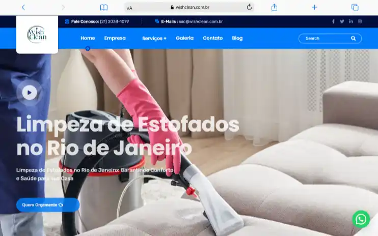 A Wish Clean é uma empresa especializada em limpeza profissional de estofados no Rio de Janeiro, com foco em qualidade, atendimento personalizado e resultados visíveis.
